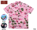 フラミンゴ柄アロハシャツはパイナップル柄などと並んでもはや王道クラスのデザインです。