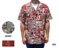 程良いガチャガチャ感も統一感のあるカラーや柄のバランスで非常に良くまとまったアロハシャツ。