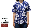 シンプルな2色使いのハイビスカス柄アロハシャツ。