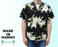シックな黒をベースにバランス良く配されたデザインはまさにアロハシャツの王道です。