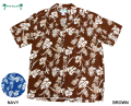 南国の植物がバランス良く散りばめられた、雰囲気のあるアロハシャツ。