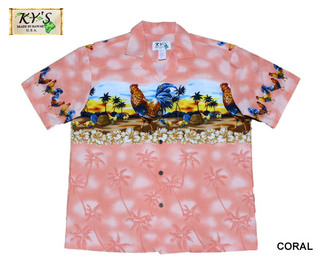 ハワイアンルースターのアロハシャツは現地の日常を感じる、ちょっと日本では見かけない一枚となっています。
