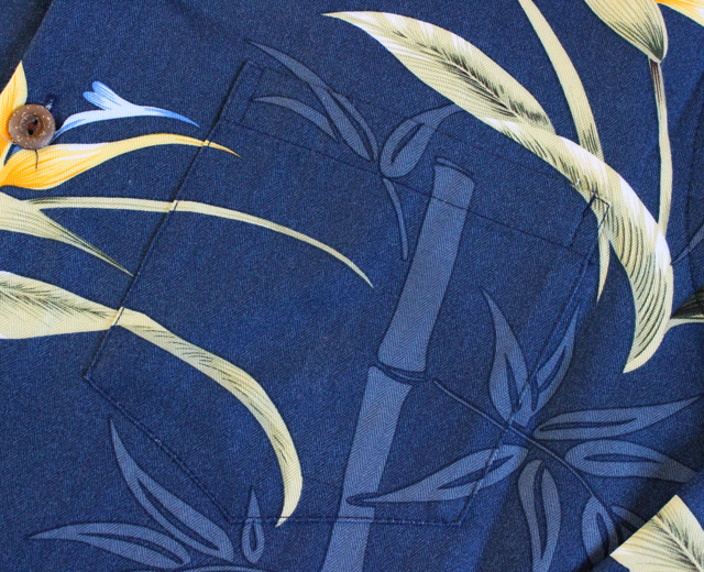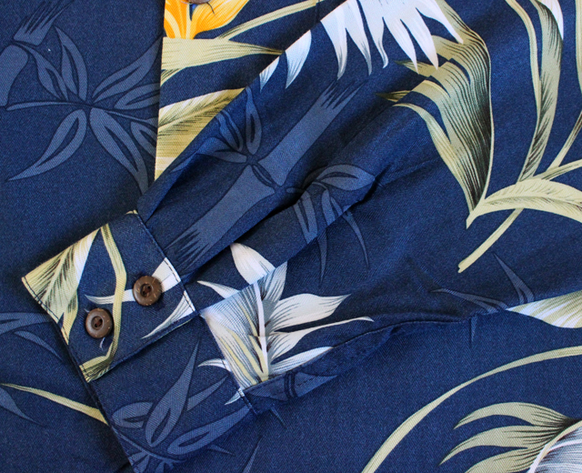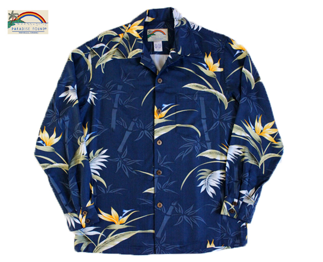 Paradise Found パラダイスファウンド 長袖 アロハシャツ ハワイ製 バンブーパラダイス 紺 ネイビー 「Bamboo Paradise L/S」