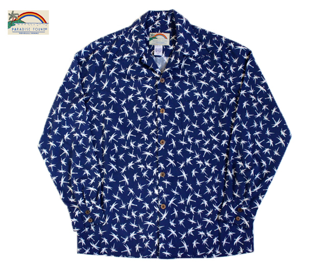 Paradise Found パラダイスファウンド 長袖 アロハシャツ ハワイ製 マグナムバンブー ネイビー 紺 「Magnum Bamboo L/S」
