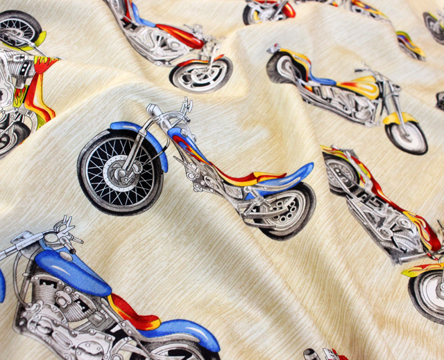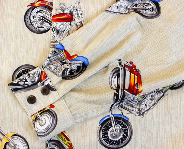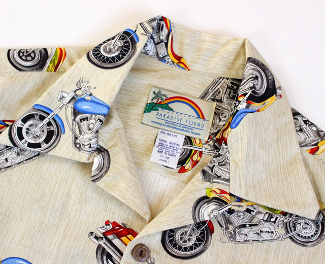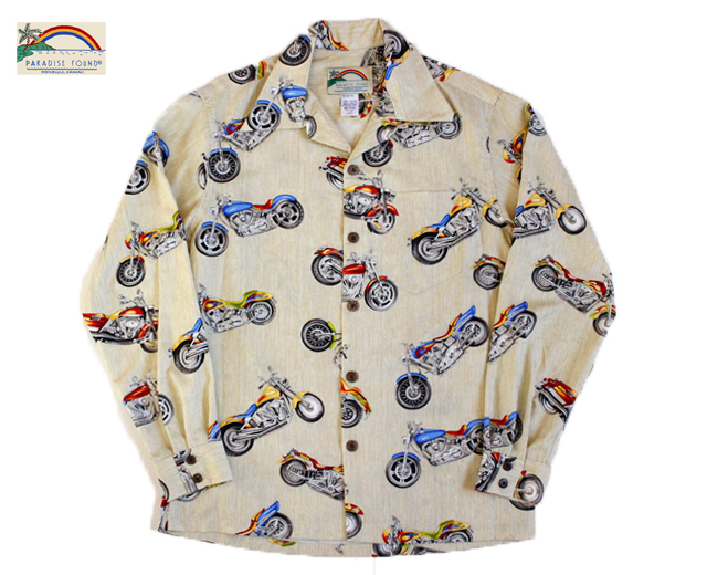 Paradise Found パラダイスファウンド 長袖 アロハシャツ ハワイ製 バイク モーターサイクル クリーム 「Motercycle L/S」