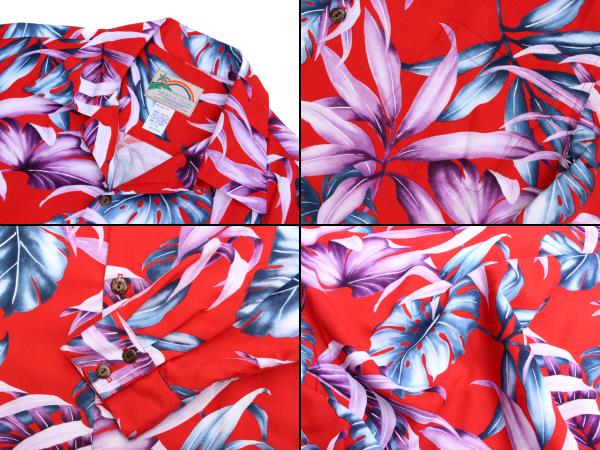 • Paradise Found パラダイスファウンド 長袖 アロハシャツ L/S RAINFOREST レインフォレスト ハワイ製 白 ホワイト 赤 レッド