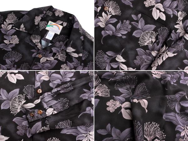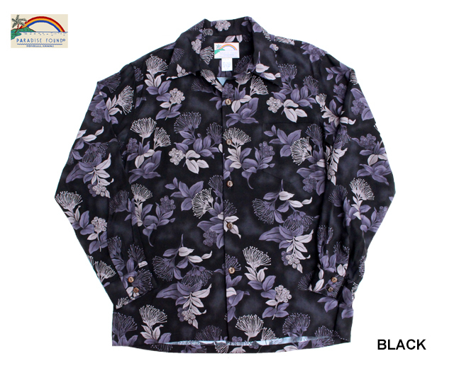 • Paradise Found パラダイスファウンド 長袖 アロハシャツ L/S OHIA オヒア ハワイ製 ネイビー 黒 ブラック