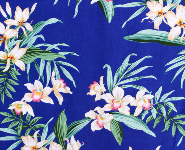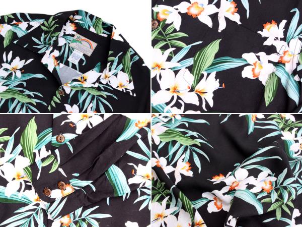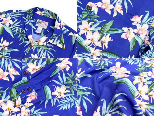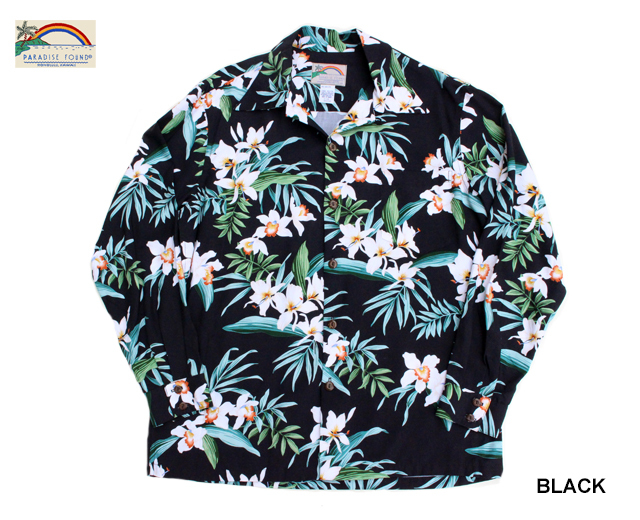 • Paradise Found パラダイスファウンド 長袖 アロハシャツ L/S ORCHID GINGER オーキッドジンジャー ハワイ製 青 ブルー 黒 ブラック