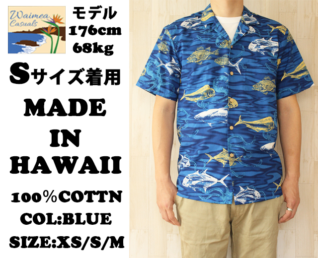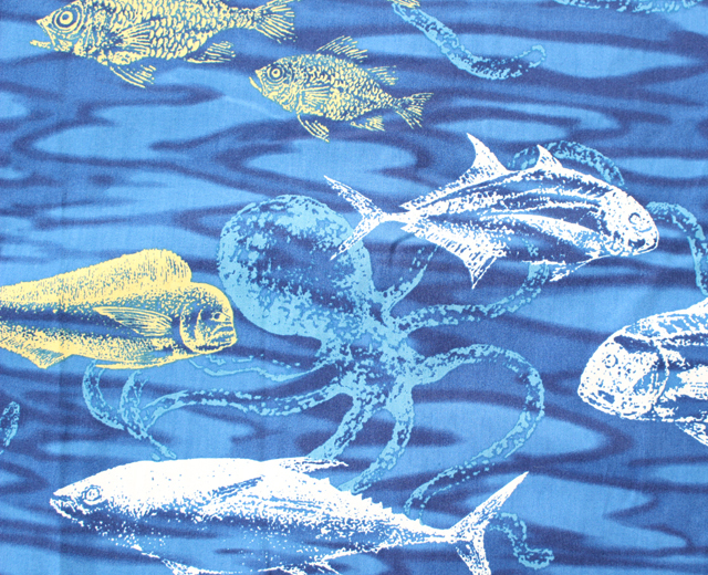 Waimea Casuals/ワイメアカジュアル アロハシャツ ハワイ製 魚柄 青 「Deep Sea」 ディープシー