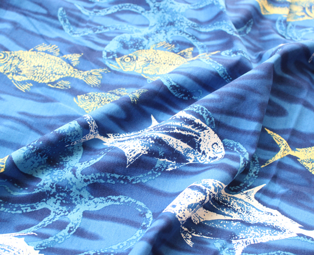 「Deep Sea」の名の通り、海の中の魚たちが所狭しと描かれたコットン製のアロハシャツ。